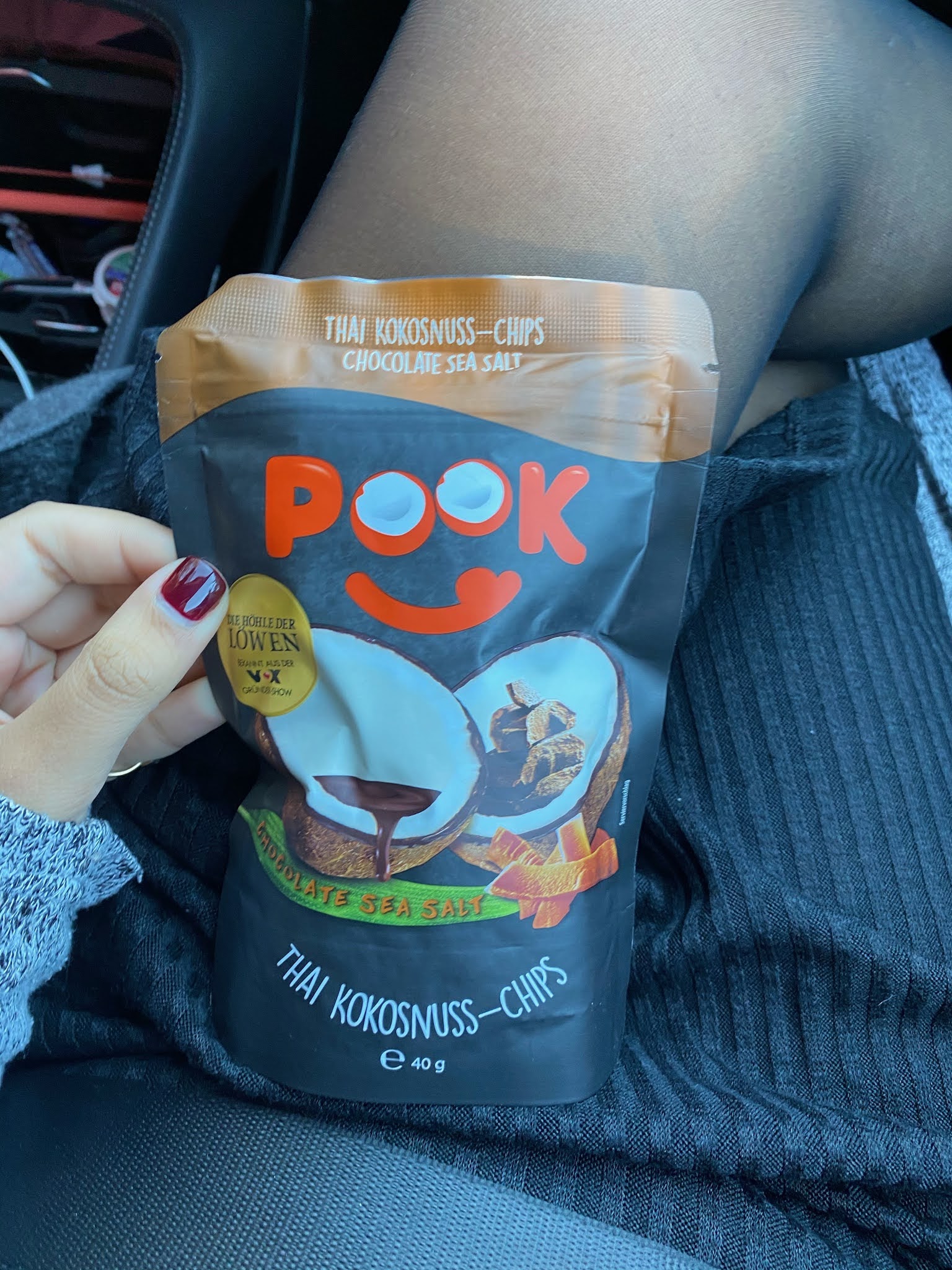Queste chips di Pook al cocco e cioccolato al caramello salato sono tra le cose più buone e sfiziose mai provate in vita mia. Vorrei tanto non averle mai assaggiate perché ora vorrei mangiarle ogni giorno fino a svenire. Ora che ne ho scritto vorrei scendere al negozio del distributore di benzina (grande fonte di questi snack) e le vorrei.