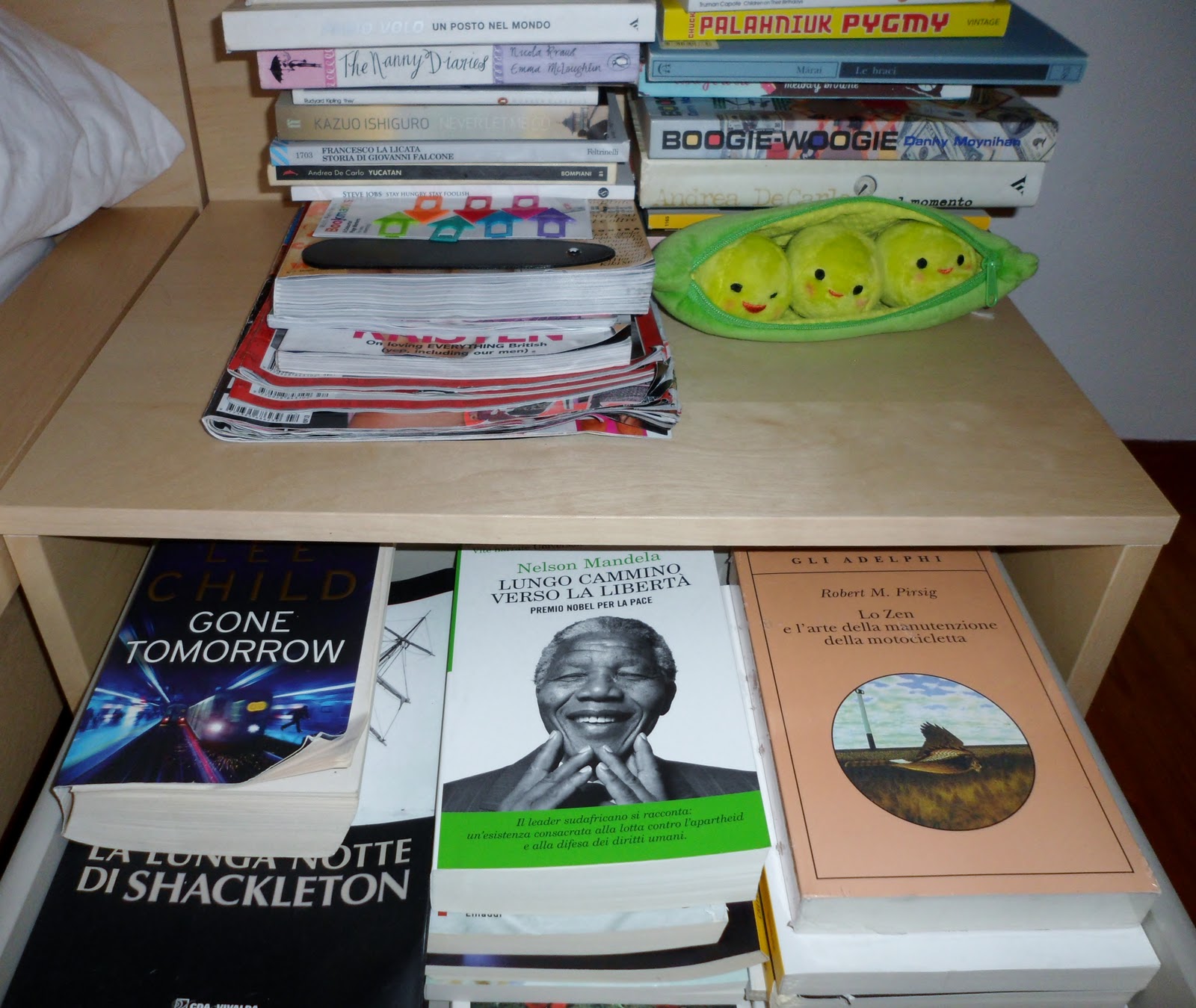 My bedside hosts the books that I haven’t read yet, waiting for a time when I’ll have more time to read just for my personal pleasure and less books to study for university.